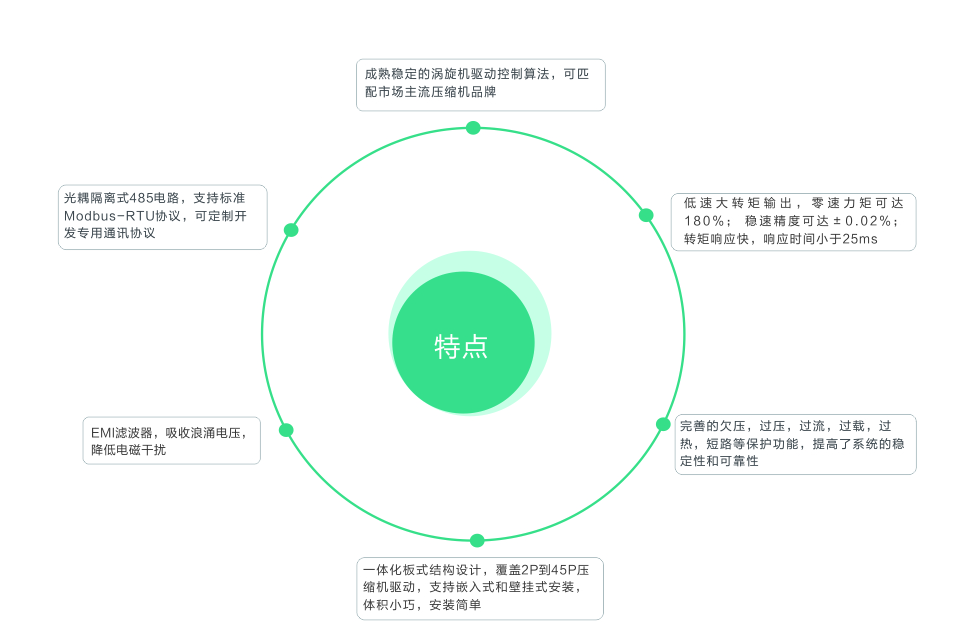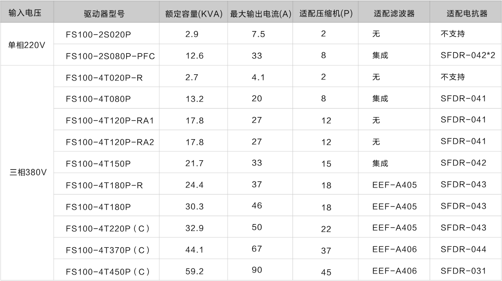 FS100系列(空調(diào))驅(qū)動器應(yīng)用于渦旋式壓縮機的BLDC同步機控制,設(shè)計輸入電壓為單相220V/三相380V,最高輸出頻率為1000Hz。采用我司自主研發(fā)的渦旋機驅(qū)動器開環(huán)矢量控制算法,實現(xiàn)BLDC的無感控制。支持欠壓,過壓,過流,過載,過熱,短路等多重保護功能。驅(qū)動器采用強制風(fēng)冷或液冷方案,整機設(shè)計壽命10年,可配置EMI濾波器和DCL直流電抗器,提高自身的抗干擾能力,同時降低對電網(wǎng)的干擾。